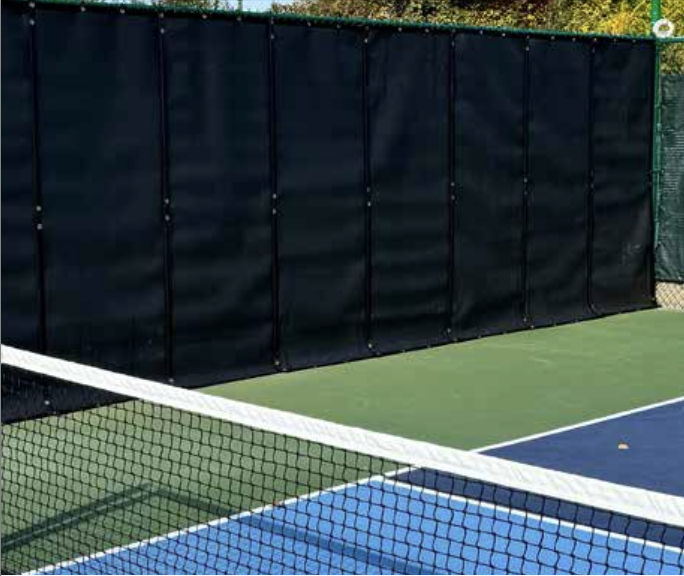 The Noisegard™ Mass Loaded Vinyl acoustic barrier windscreen offers unmatched durability and outstanding noise reduction performance. With a decibel decrease from 28 to 33 dB, these polyester mesh reinforced curtains can eliminate unwanted noise issues for neighbors while providing the best playing conditions on the court. Available in black and gray.