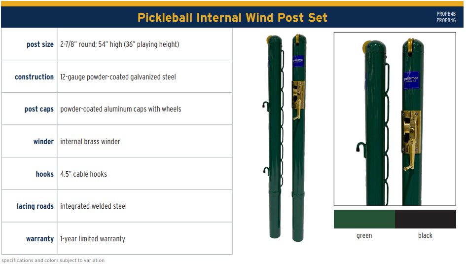 Putterman PROPB4 Pickleball Internal Wind Post Set 2 7/8″ – Black